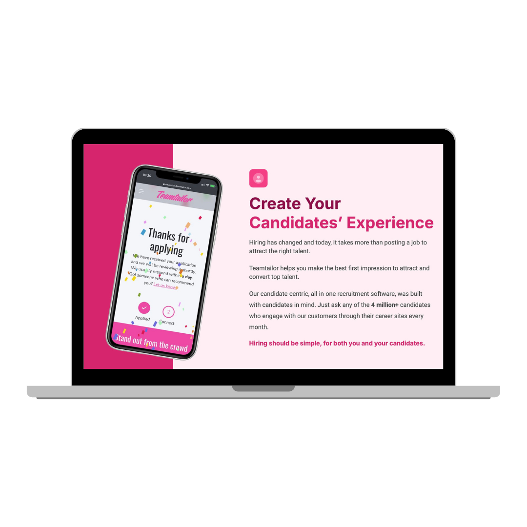 Used by organisations ranging from scale-ups to enterprises across multiple industries, Teamtailor adapts as your hiring needs evolve.